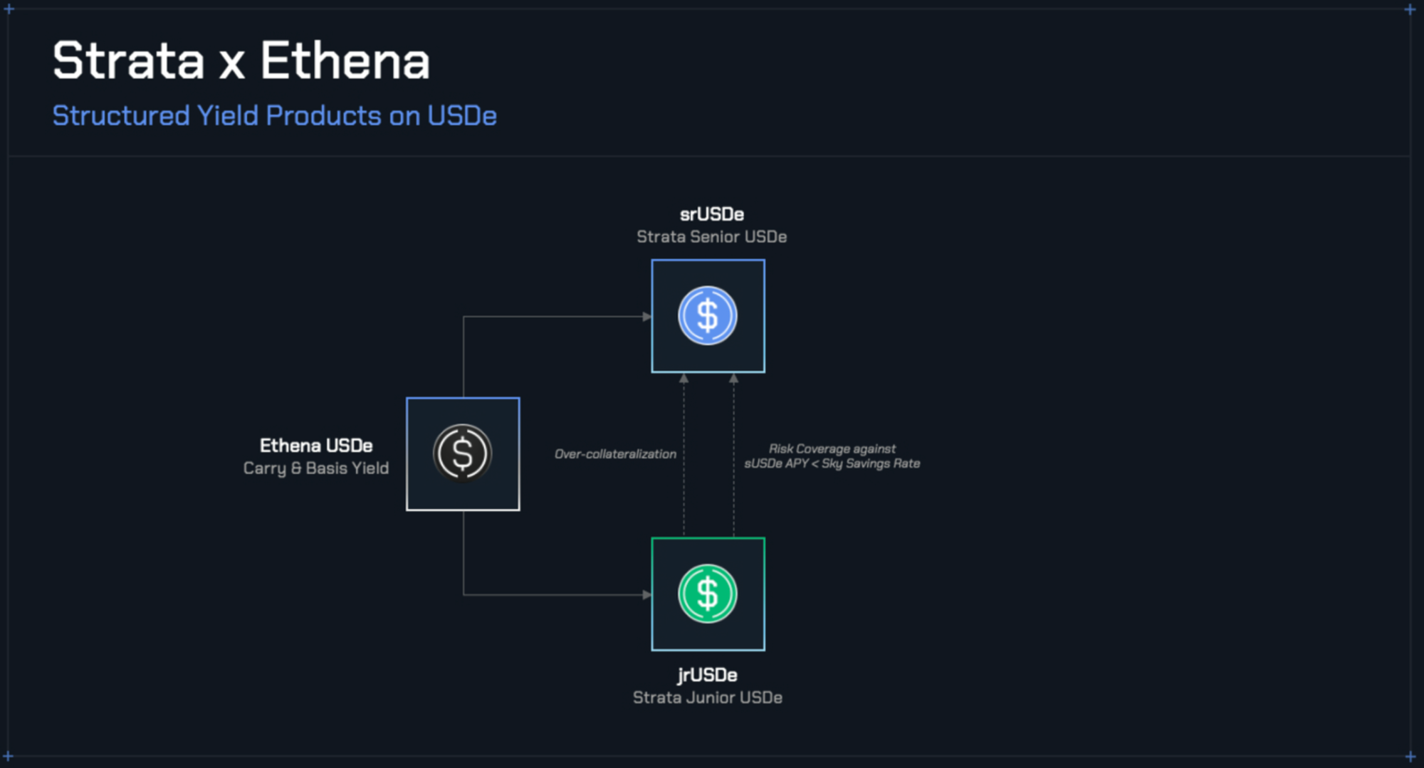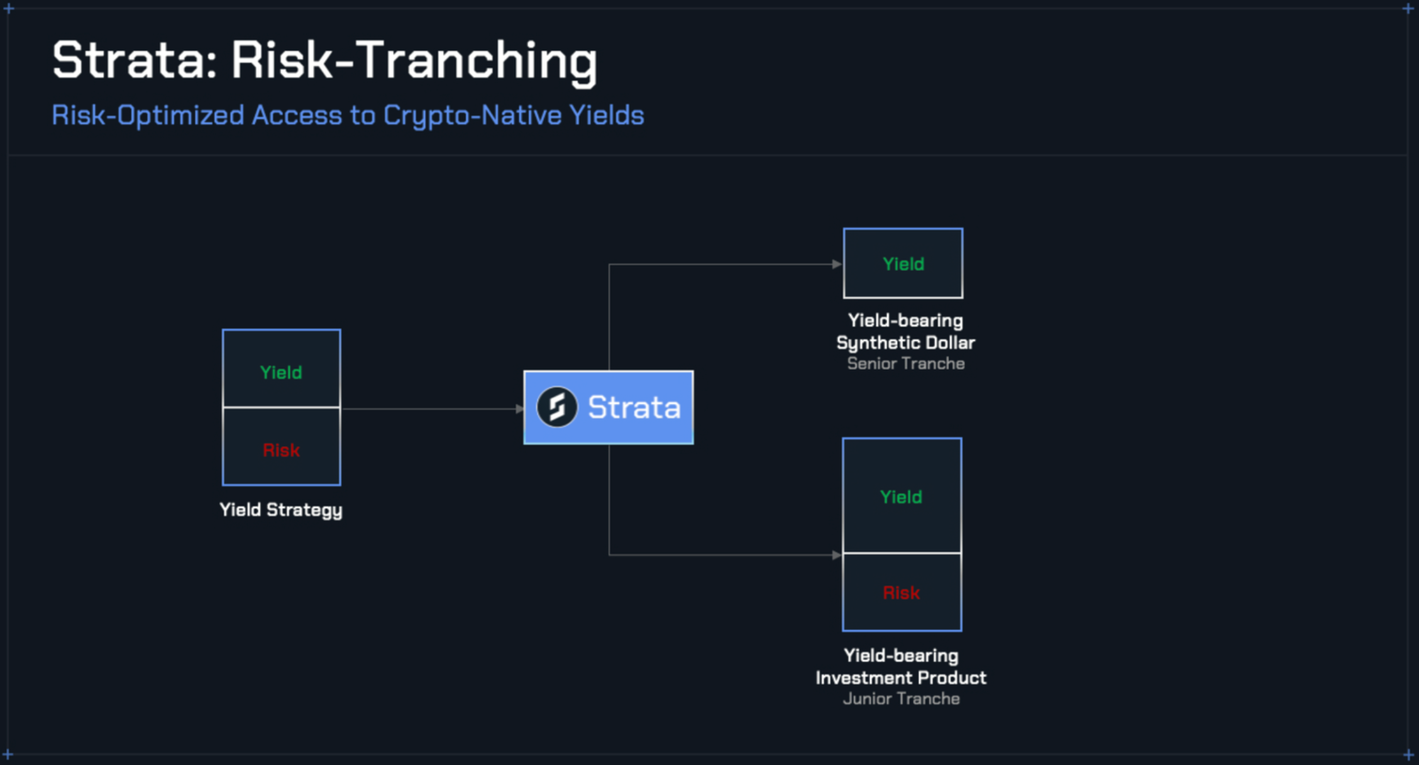 Strata is a perpetual risk tranching protocol. It builds structured yield products on USDe, Ethena’s synthetic, delta-neutral stablecoin, to give investors options depending on their risk tolerance.